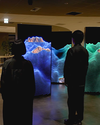 NTTドコモビジネス様の事業共創プログラム「OPEN HUB for Smart World」の常設エントランス・インスタレーションにおいて、VIEは中核となるニューロテクノロジーを提供しました。体験者の「集中」と「リラックス」。その目に見えない脳の状態を、イヤホン型脳波計でリアルタイムに測定。VIEのニューロミュージックと脳波解析技術、そして生成AIを融合させることで、体験者の内面が「地形」や「風景」としてアート空間に描き出される、これまでにない体験を創出しました。